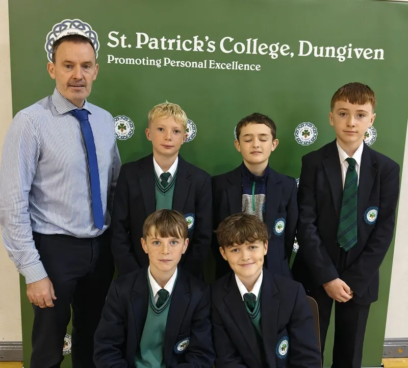 Front row - Oran O'Kane and Conor O'Kane. Pictured with acting Principal Mr. McMullan.